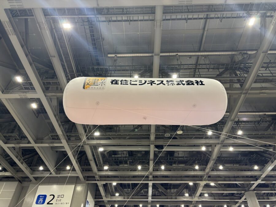 W3500・H1000の大型バルーンを浮かせ、社名を最大限に訴求する