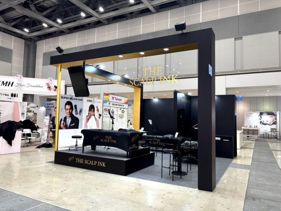ブース全体を囲うフレームを大きく立ち上げることで、遠くからでもブランドの存在を視覚的に強調