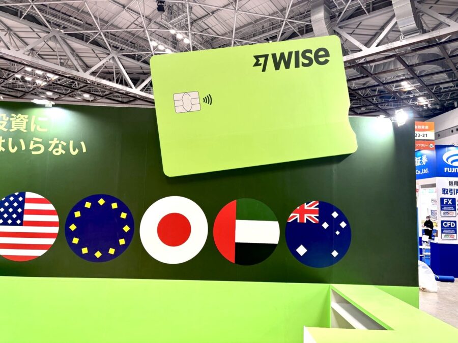 ブースの右上部に、ICチップと非接触決済マークがデザインされた巨大なカードのオブジェが飛び出すように設置されています。一目で決済や金融系のサービスであることが直感的に伝わるインパクトのある仕掛けです。